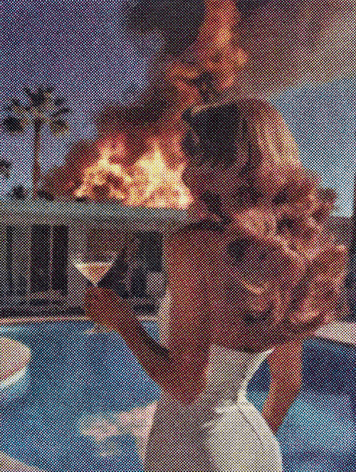 The fire is a metaphor for that feeling of destruction or rage or grief or loss, and the ladies looking at the fire, they're not scared. They're not even probably worried. They're just like, yes, this is the moment in time. This is what it is, and some of them have poured a martini…that tends to be me.