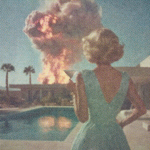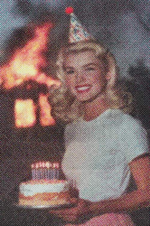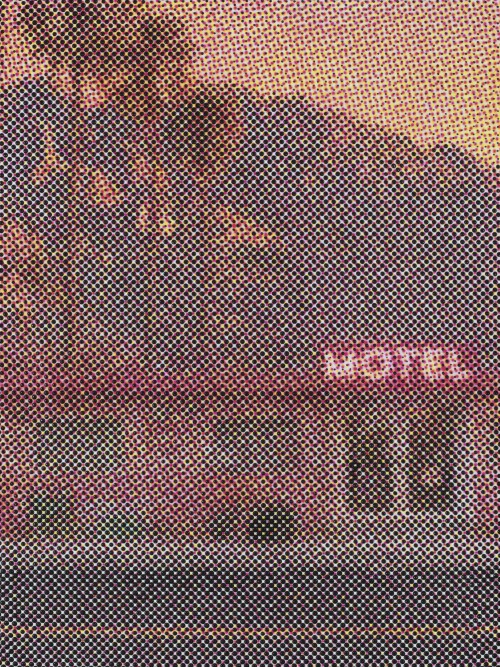 Maggie Hall creates large scale paintings that transform pop cultural imagery through a meticulous CMYK dot process using hundreds of thousands of hand applied circles. Her works begin with AI prompting and digital collage but become grounded in physical labour, turning nostalgic subjects into emotionally charged scenes.